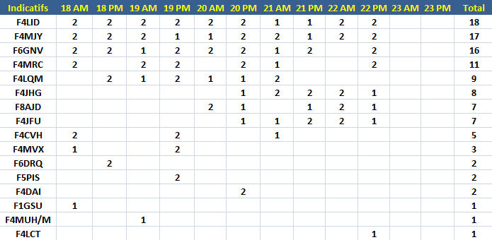 Pendant la période du concours, chaque jour à 20h00, le tableau des résultats sera actualisé sur F6ZAI.fr