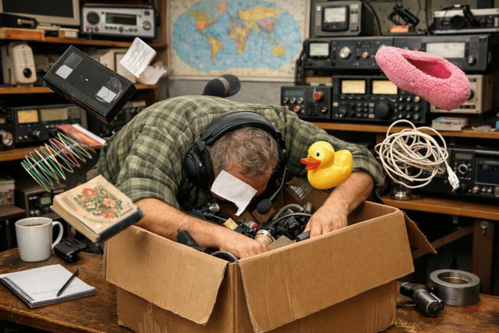 On reconnaît un radioamateur accro au contest à plusieurs signes très scientifiques : il entend des CQ même dans le bruit du micro-ondes, il parle en indicatifs avec son chat, et il considère le café comme un simple carburant d’opérateur nocturne.